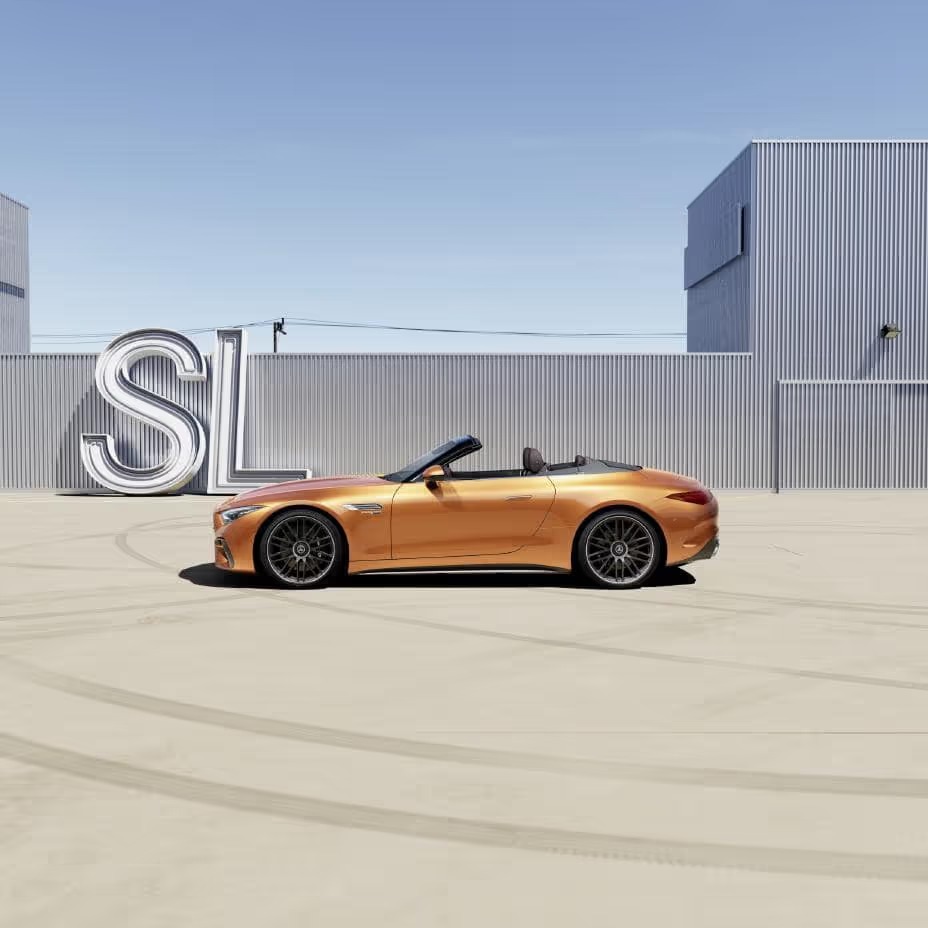 Inspired by the breathtaking sunsets of the Pacific Coast, the Mercedes-AMG® SL 63 MANUFAKTUR Big Sur is finished in MANUFAKTUR Orange Flame Metallic. The striking paint color is applied to the body with extra care in the dedicated MANUFAKTUR line at the factory, while components such as the front and rear bumpers are hand-sprayed to ensure the highest quality finish.